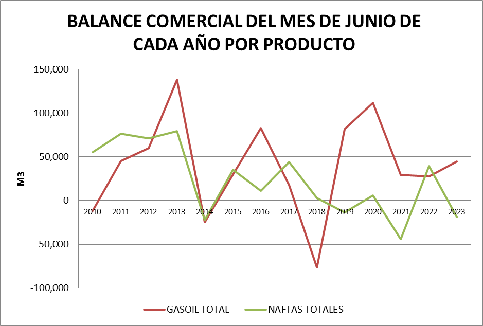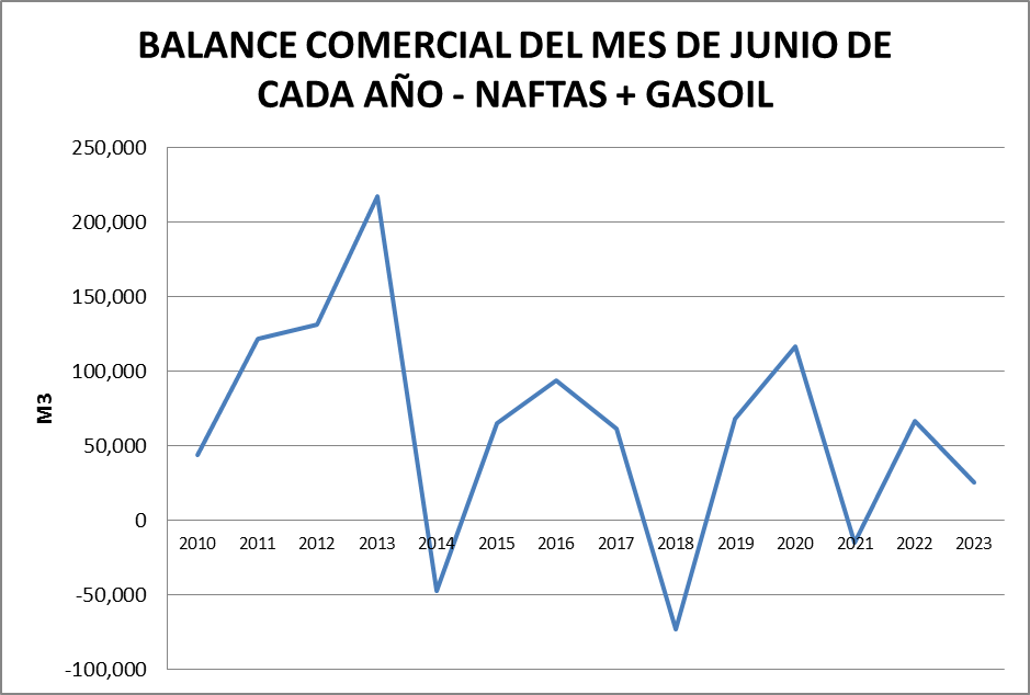 En junio de 2023 subsiste el negativo de gasoil grado 2 que podrían significar problemas de abastecimiento puntuales, aunque su quantum es de relativa importancia.