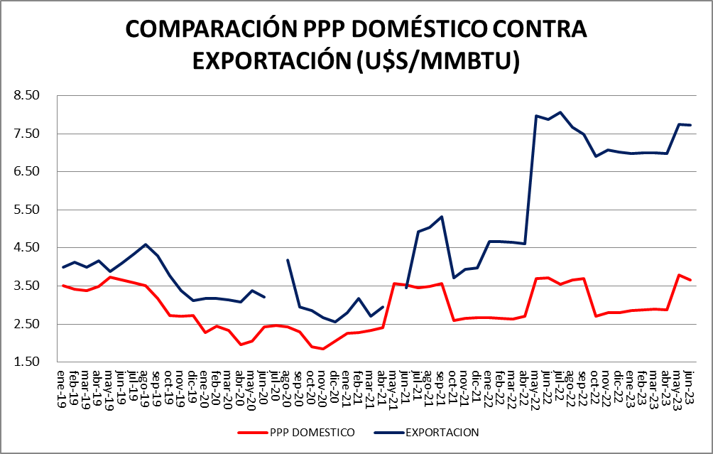 En cuanto al valor de las exportaciones (7,73 u$s/MMBTU), bajaron en junio un 0,13% respecto a mayo.