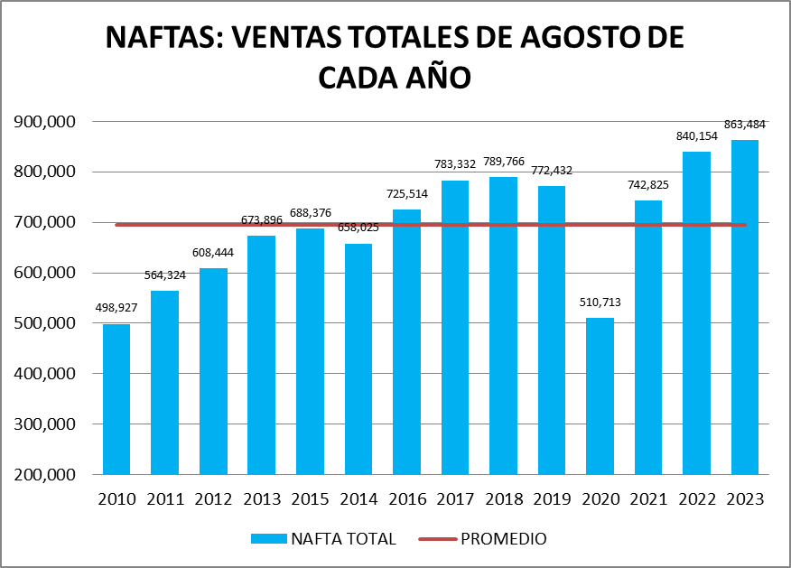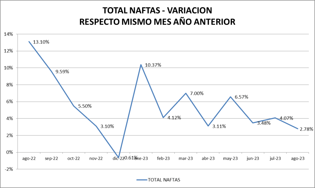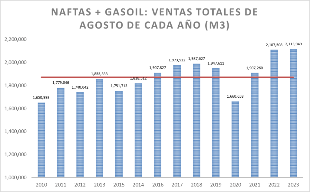 En el caso de las naftas, en agosto de 2023, la venta fue la mejor de la serie.