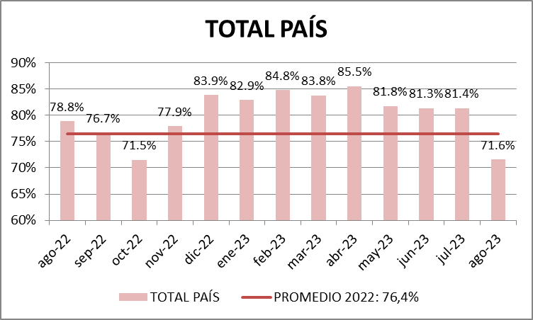 Con respecto a agosto del año 2022 se cargó 14,13% menos.