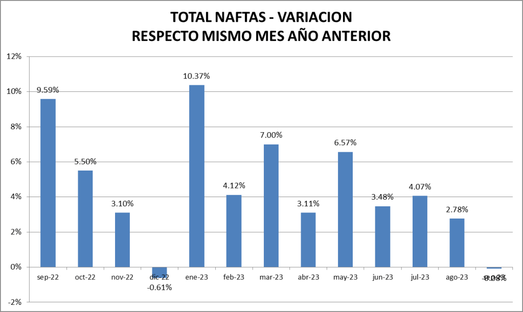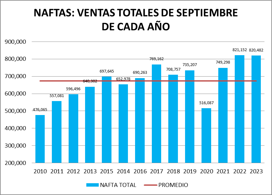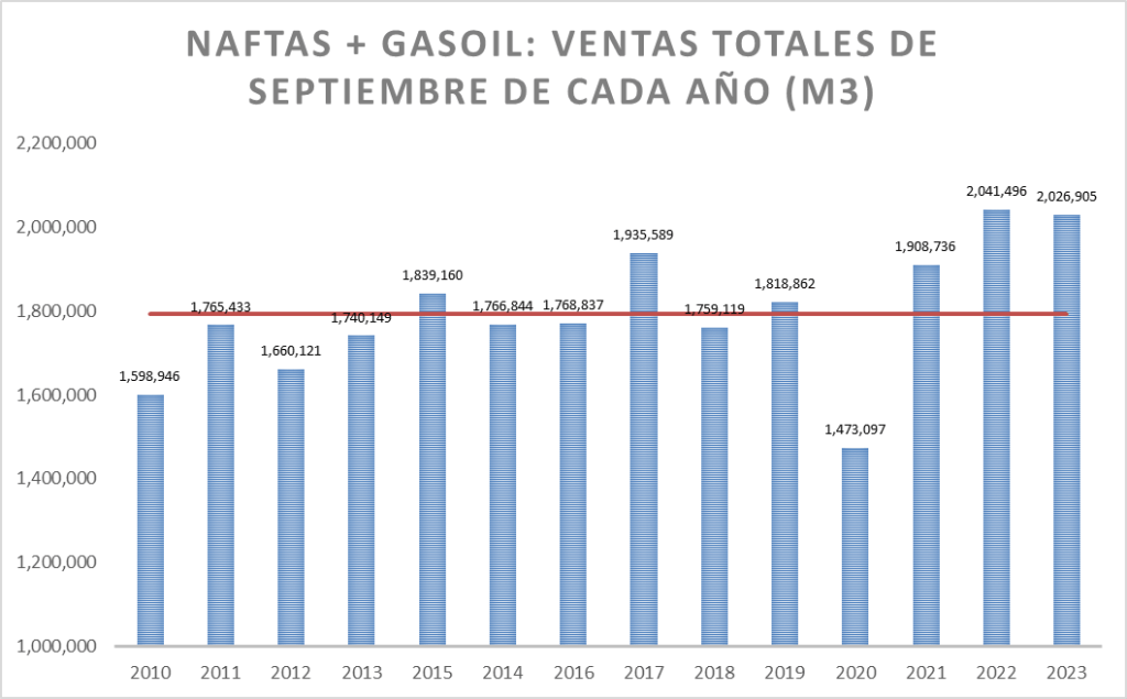 En el caso de las naftas, en septiembre de 2023, la venta tampoco fue la mejor de la serie.