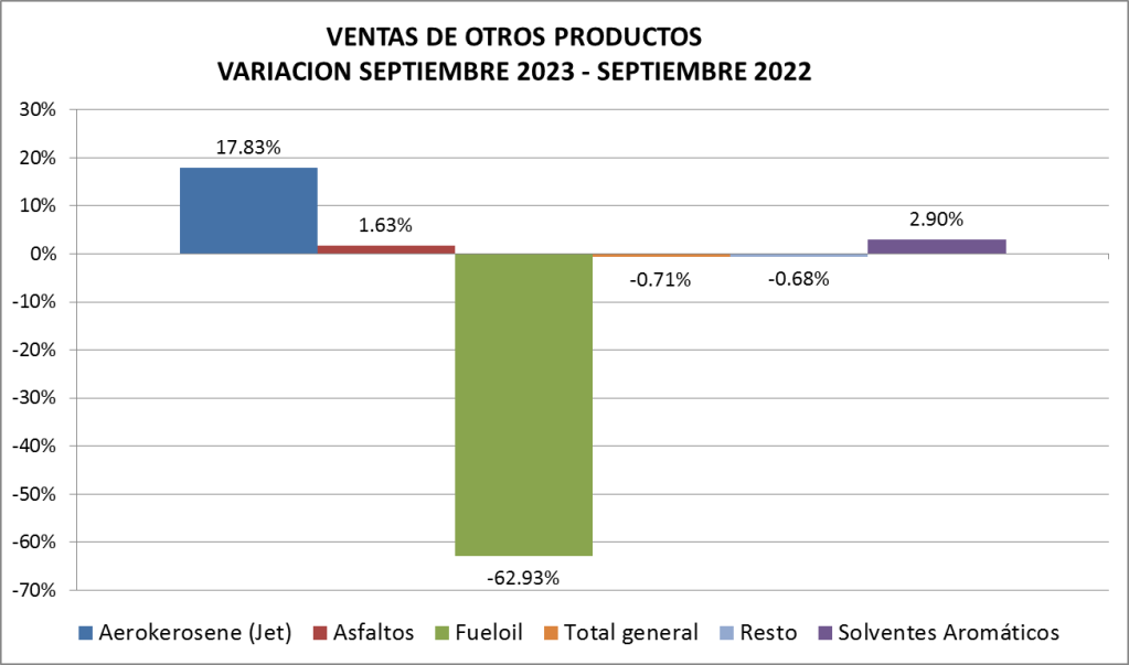 En septiembre de 2023, las ventas totales de naftas bajaron un 4,98 % respecto al mes anterior mientras que las de gasoil también cayeron, pero un 3,52%.