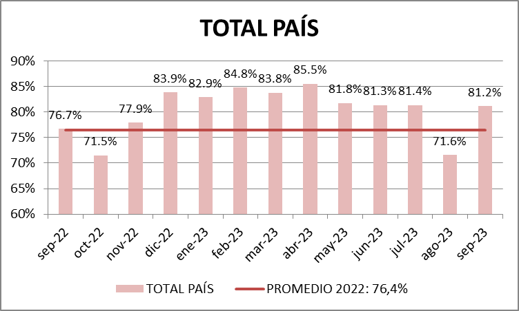 El promedio general del país pasó de 71,6% en agosto a 81,2% en septiembre.
