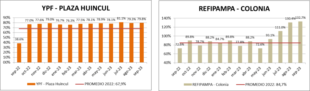 El informe se realiza sobre la base de las principales refinerías, según el siguiente detalle: