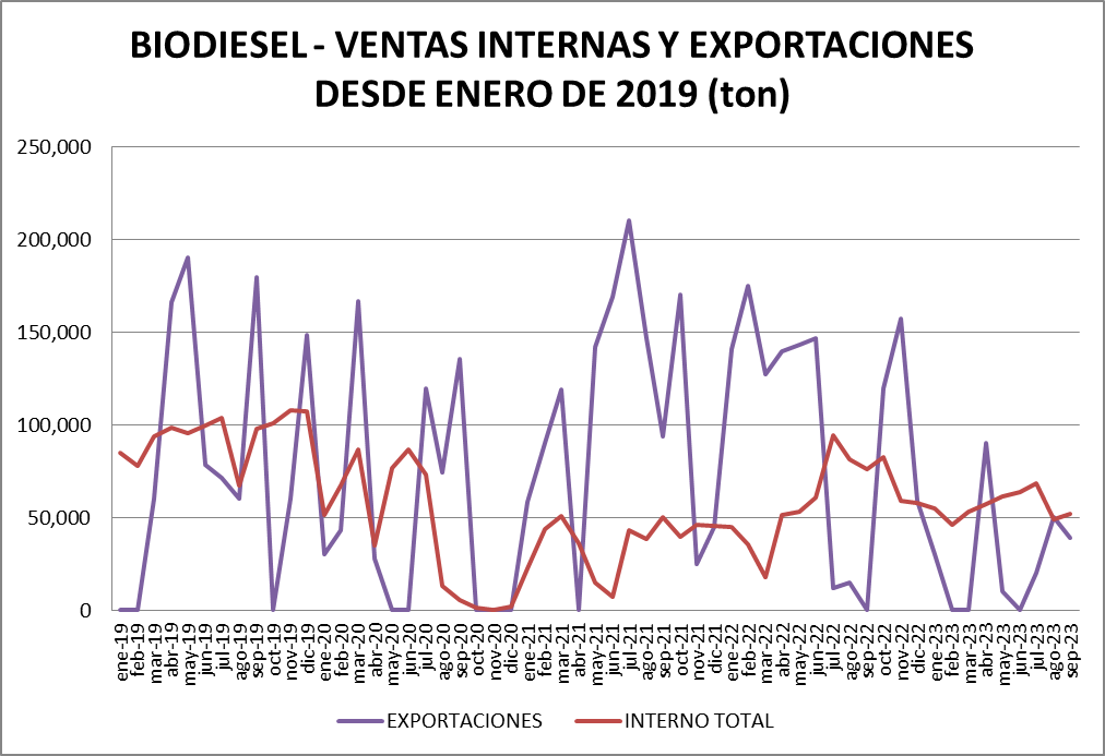 Se registran exportaciones de biodiesel en septiembre de 2023 por 39.082 toneladas.