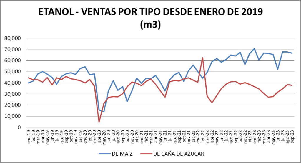 | Etanol de Caña (m3) | 39,227 | -9.96% | -29.27% |