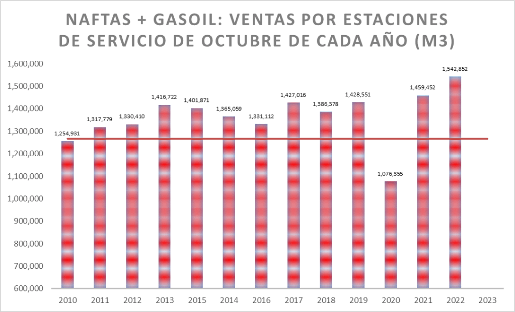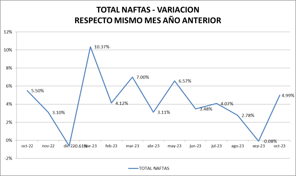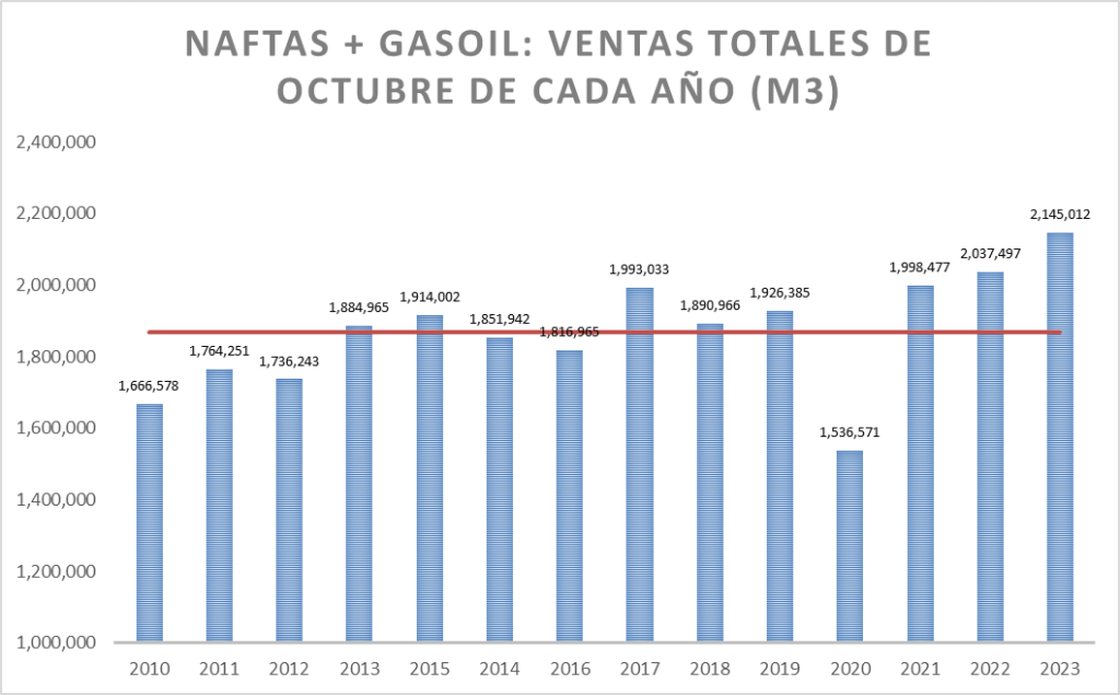 En el caso de las naftas, en octubre de 2023, la venta también fue la mejor de la serie.