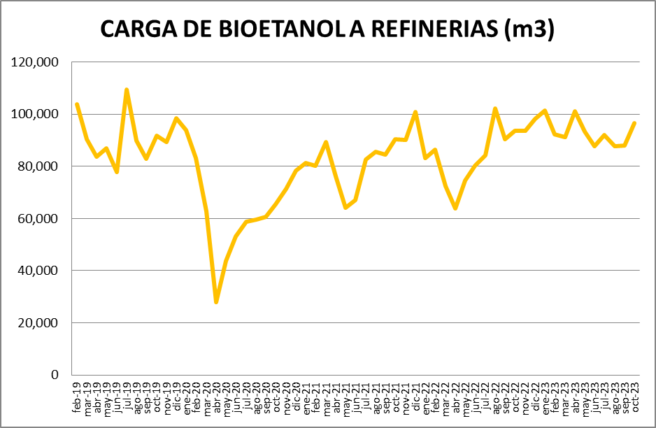 En cuanto al bioetanol, se utilizó en octubre de 2023, un 9,7% más que en septiembre de 2023.