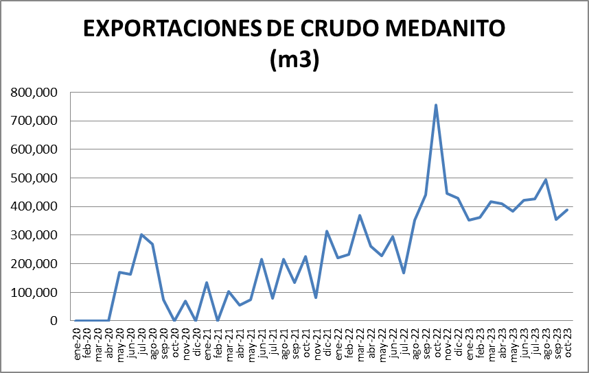 En el siguiente gráfico vemos claramente la evolución creciente de la exportación del crudo Medanito.