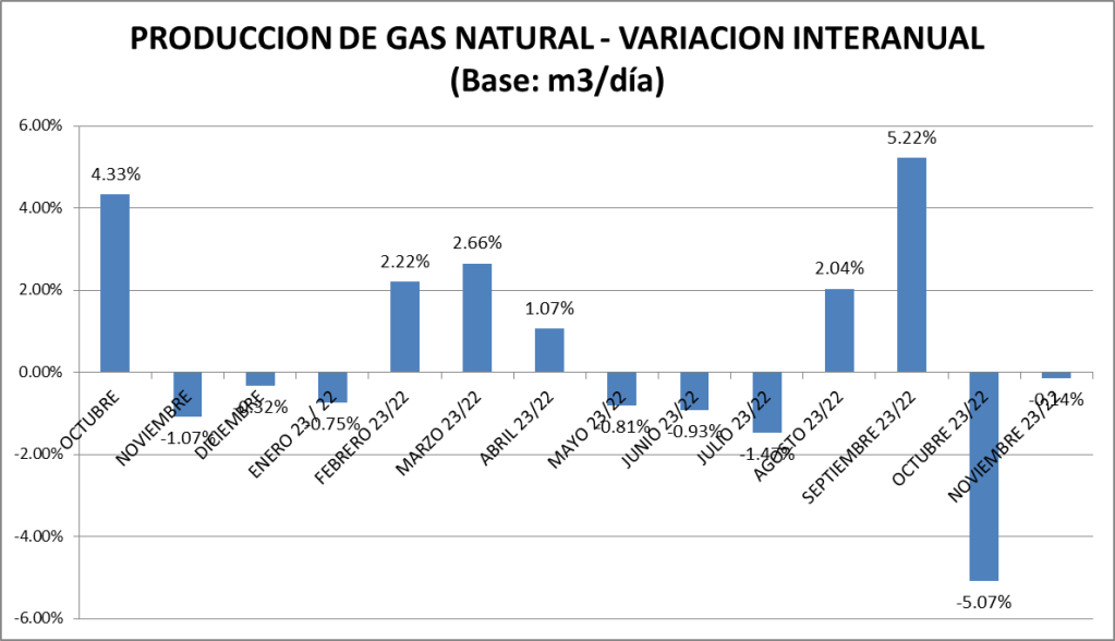 La producción de gas natural de los meses de noviembre de cada año puede verse en el gráfico a continuación: