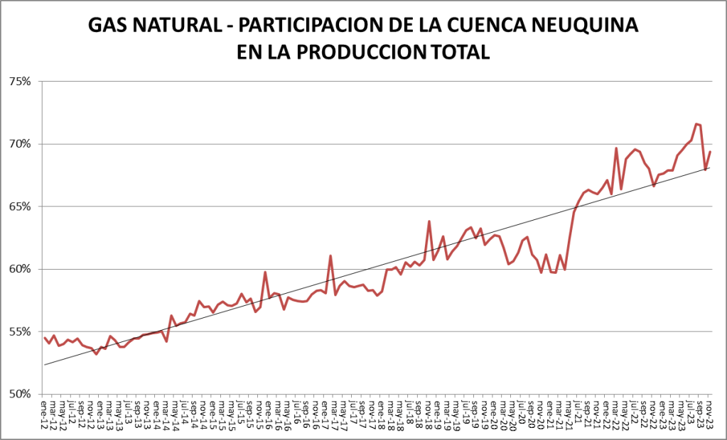 En el caso del gas natural la cuenca preponderante es la neuquina: