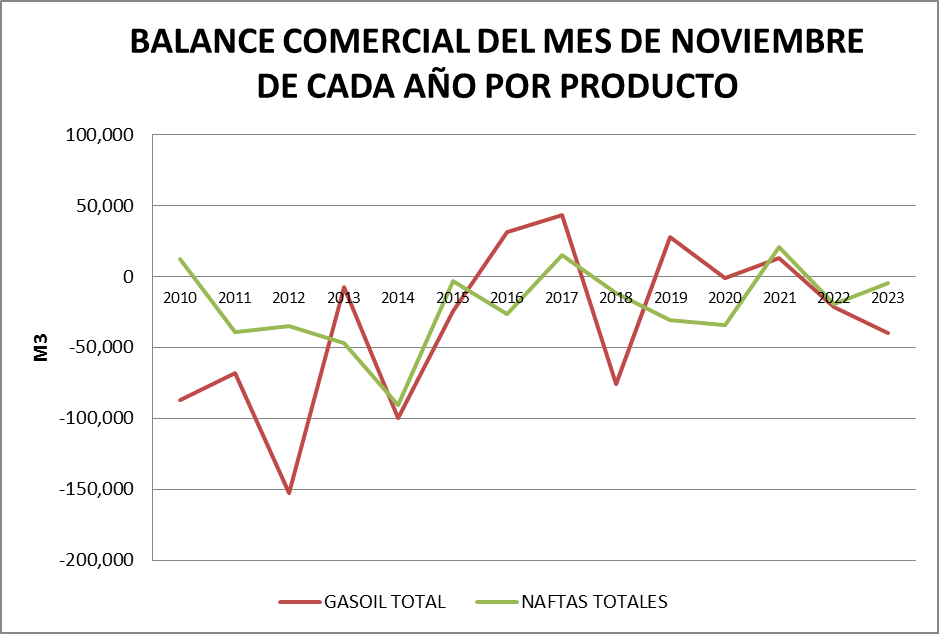 El balance general de los cuatro productos es negativo en 45.131 m3, cifra de poca relevancia.