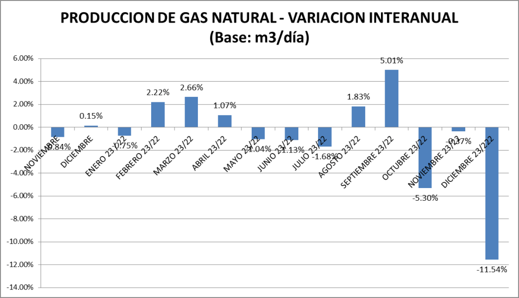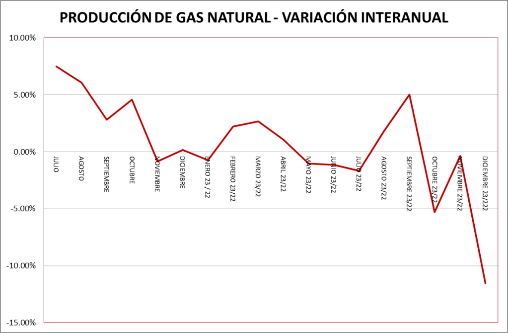 La producción de gas natural de los meses de diciembre de cada año puede verse en el gráfico a continuación: