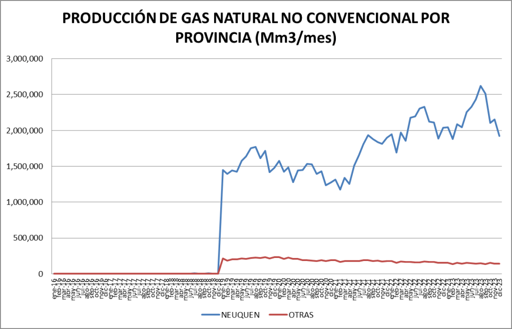 PRODUCCIÓN NO CONVENCIONAL DE GAS NATURAL POR PROVINCIA (Mm3/mes)