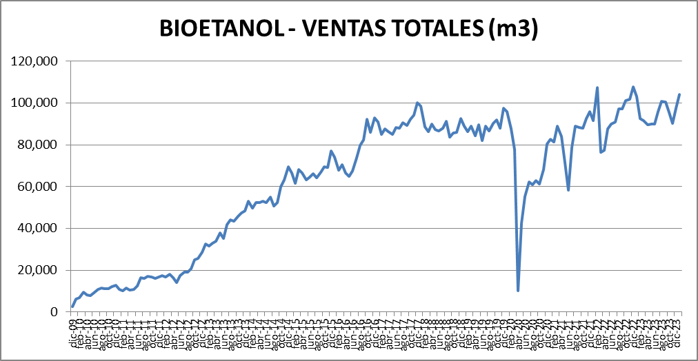 | TOTAL ETANOL (m3) | 102,958 | -5.25% | 8.13% |