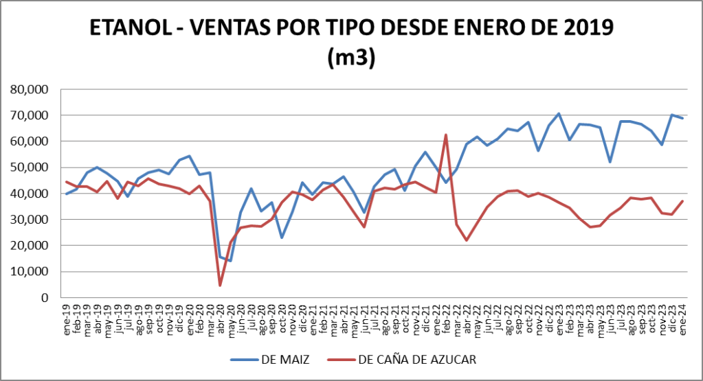 | Etanol de Maíz (m3) | 68,971 | -1.81% | -2.50% |