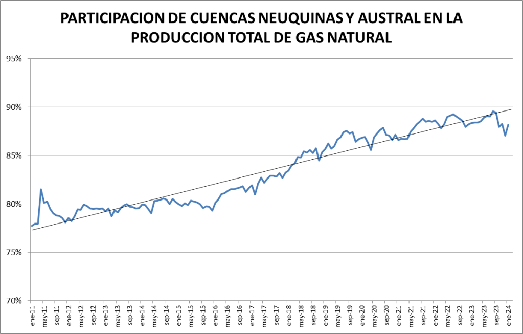 En el caso del gas natural la cuenca preponderante es la neuquina: