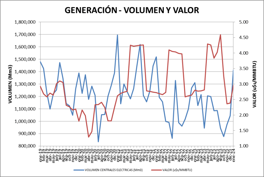 En cuanto al volumen, se consumieron 33,76 MMm3/día en promedio. 35,19% más que el mes anterior y 7,73% también por encima de enero de 2023.