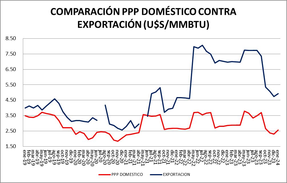 En cuanto al valor de las exportaciones (4,93 u$s/MMBTU), subieron en enero un 4,23% respecto a diciembre.