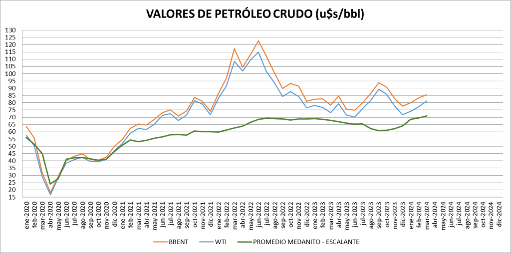El promedio nacional de marzo 2024 es de 70,89 dólares por barril.