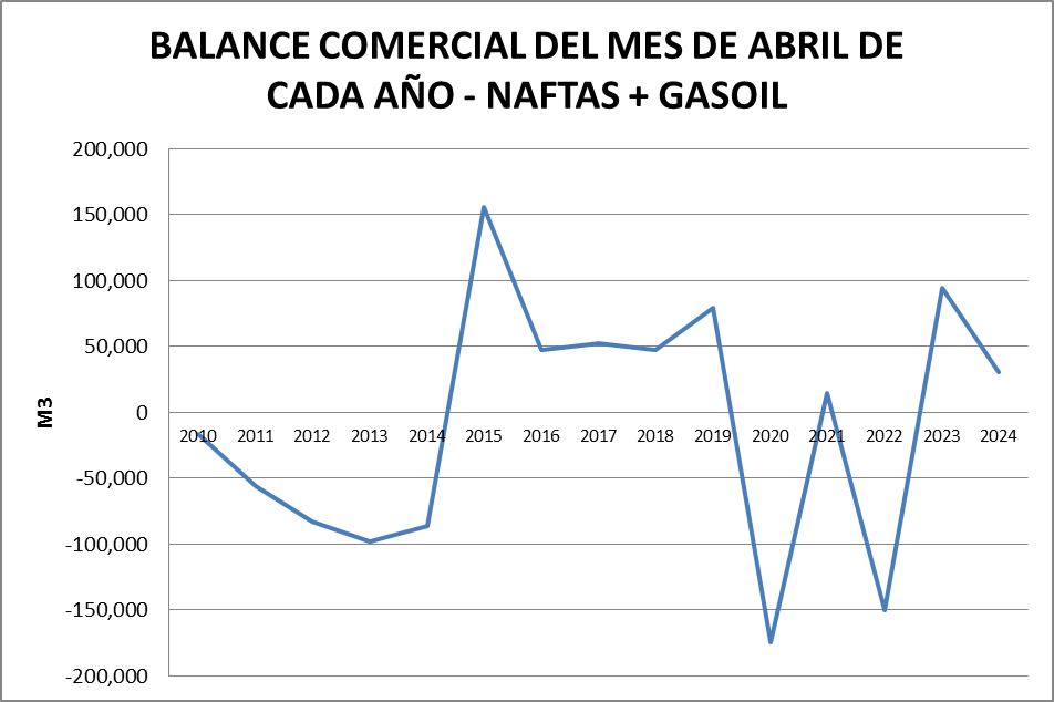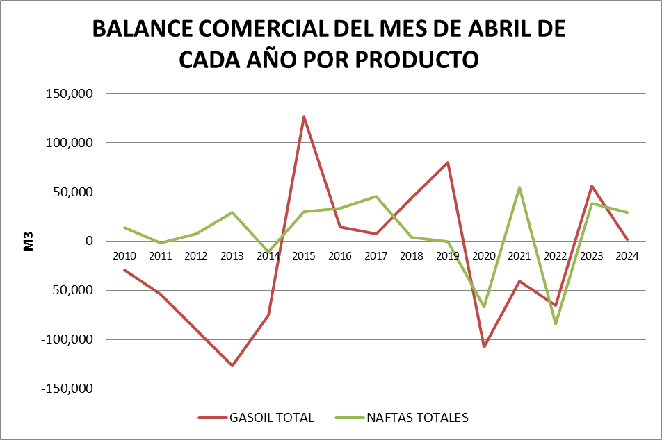 Ambos productos presentan valores positivos en sus balances. En el caso del gasoil es prácticamente nulo.