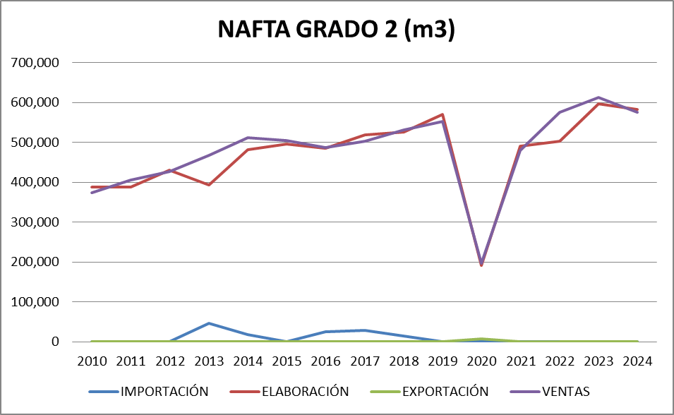 | AÑO | Gasoil Grado 2 (Común) | Gasoil Grado 3 (Ultra) | Nafta Grado 2 (Súper) | Nafta Grado 3 (Ultra) | TOTAL |