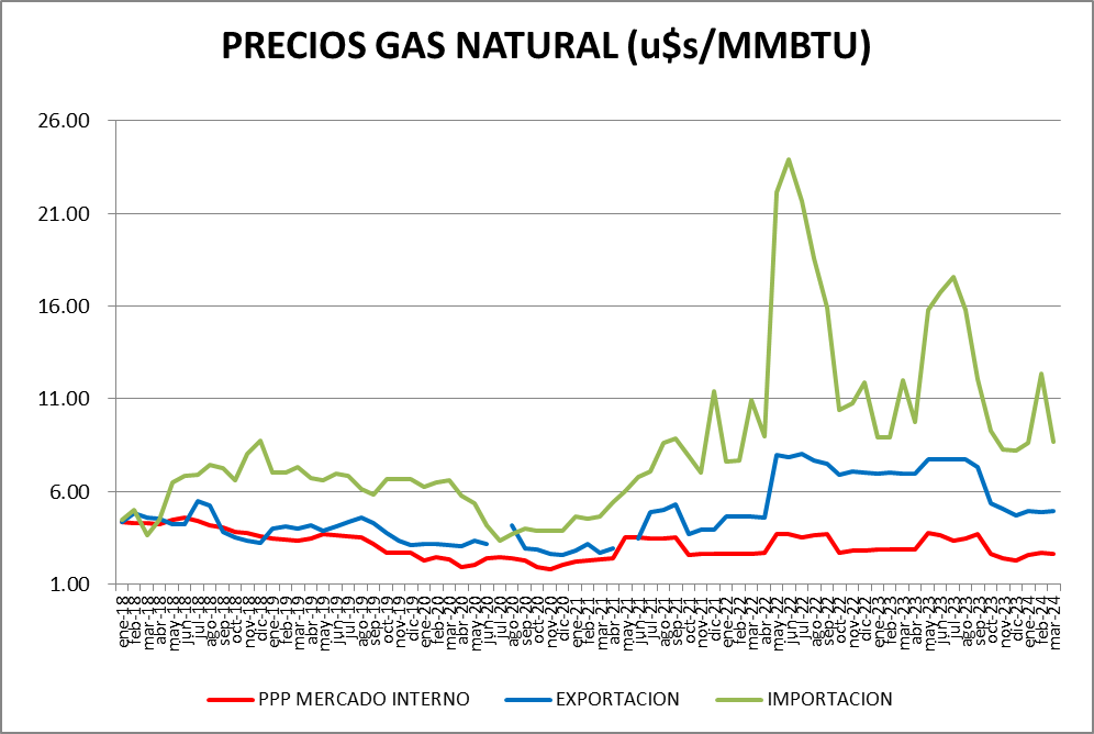 En cuanto al valor de las exportaciones (4,94 u$s/MMBTU), subieron en marzo un 1,44% respecto a febrero…
