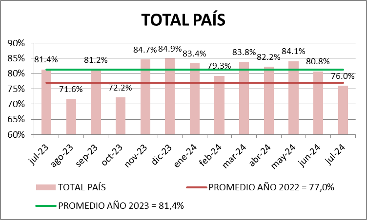 | TOTAL PAÍS | 2,375,165 | 76.0% | -5.88% | -6.56% |