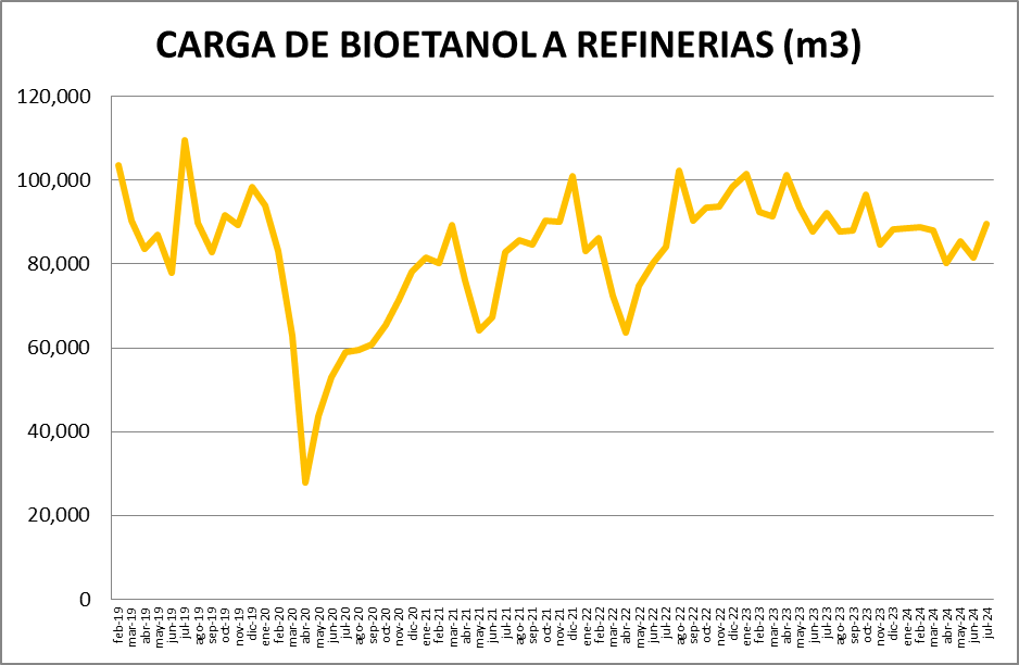 En cuanto al bioetanol, se utilizó en julio de 2024, un 9,85% más que en junio de 2024.
