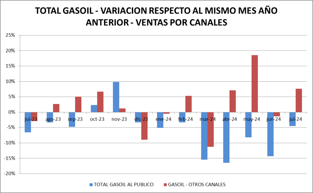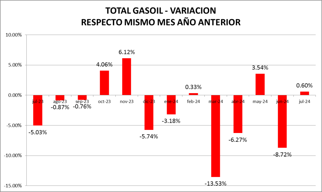 Las ventas totales de gasoil (todas las calidades, todos los canales) subieron un 0,60% interanual y, además, fueron un 9,3% mayor a junio.