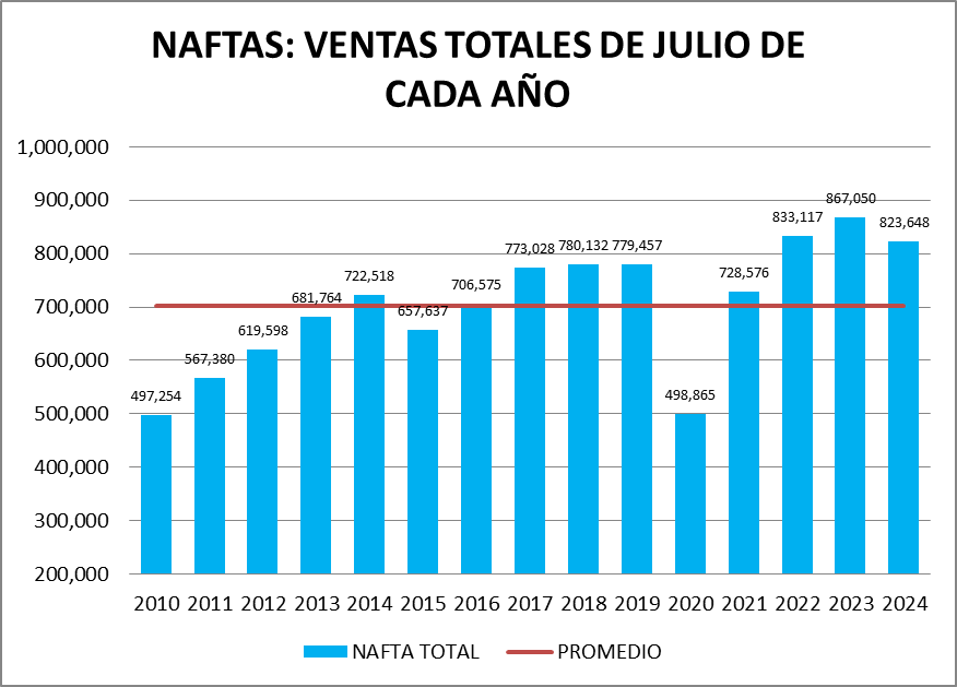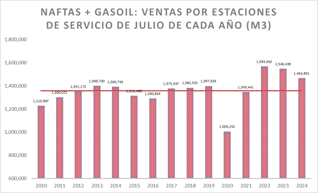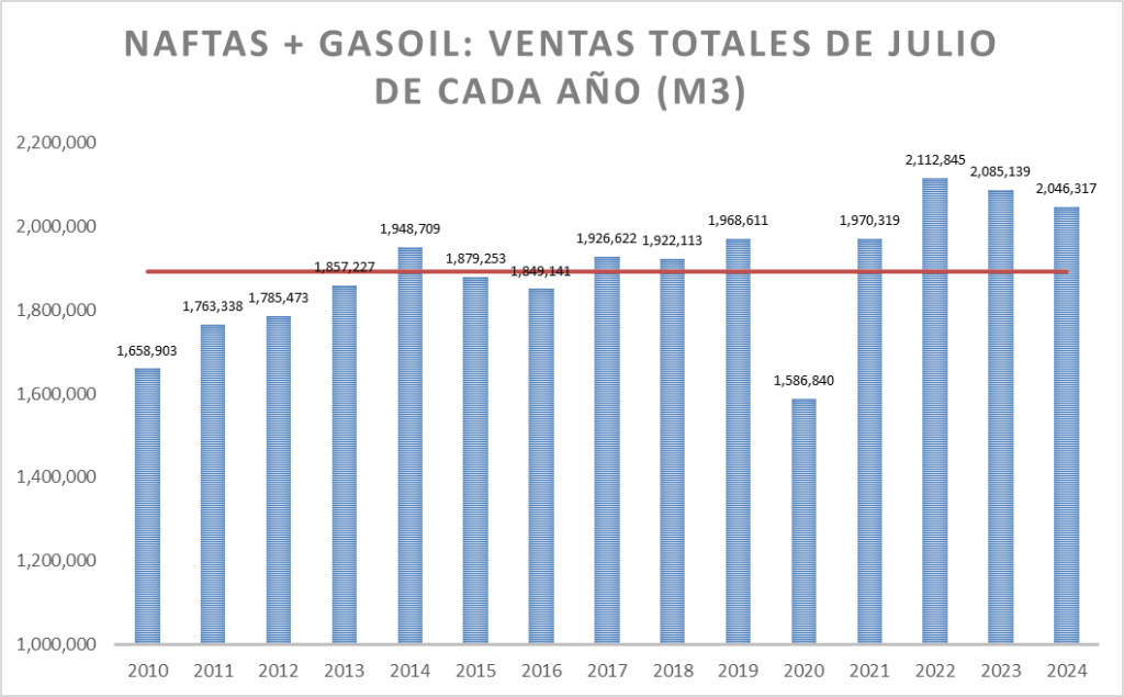 En el caso de las naftas, en julio de 2024, la venta no fue la mejor de la serie.
