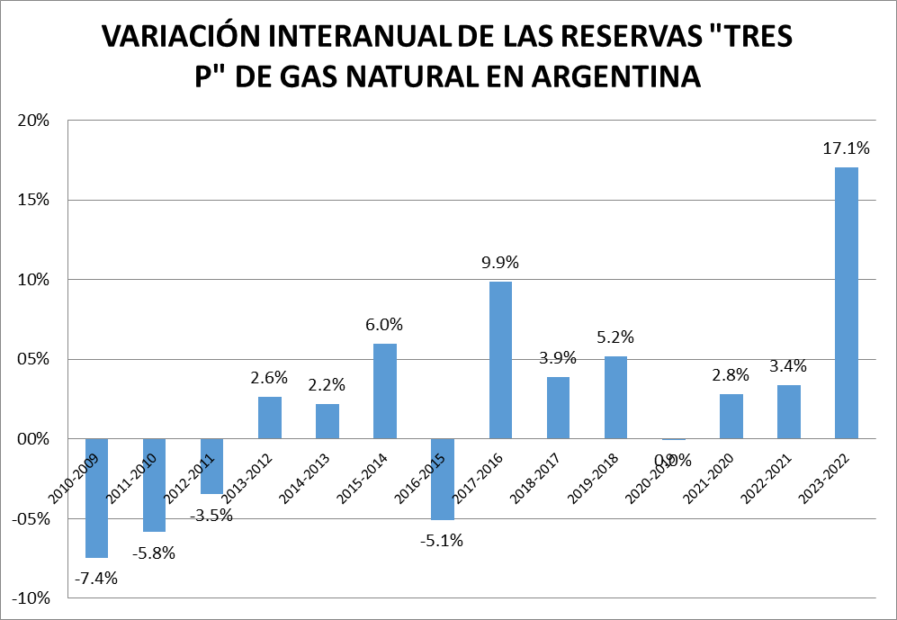 Gas Natural: Las reservas comprobadas aumentaron un 4,51% al 31 de diciembre de 2022 respecto del mismo día del 2021.