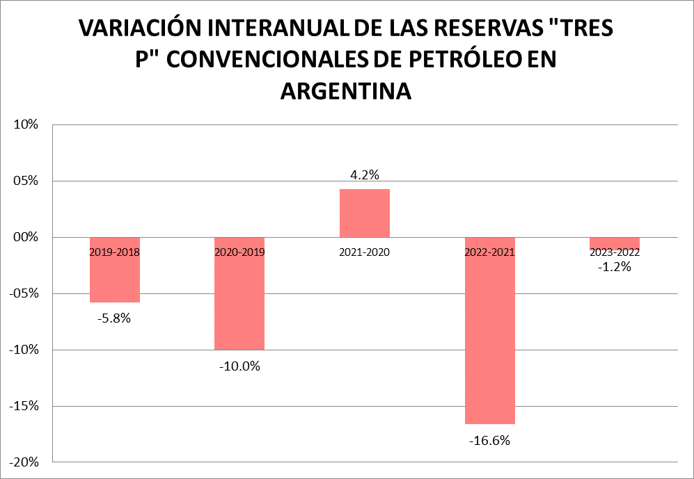 Las reservas provenientes de explotaciones convencionales se retrotraen un 1,20% en su variación 2023/2022.