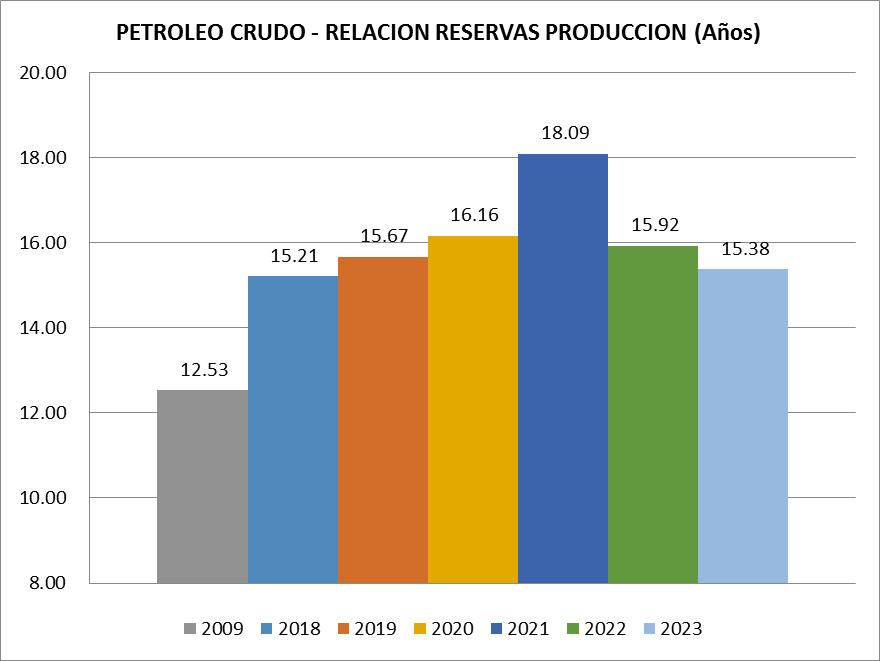 La relación (R) está calculada como el cociente entre el mix de reservas (M) y la producción (P).