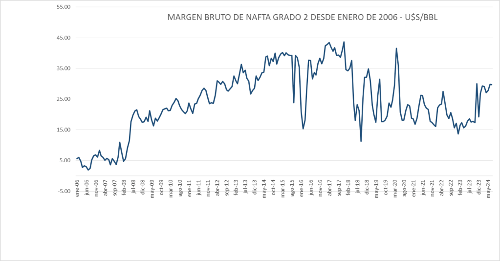 El margen bruto de nafta está solamente por debajo del promedio 2016 – 2019.