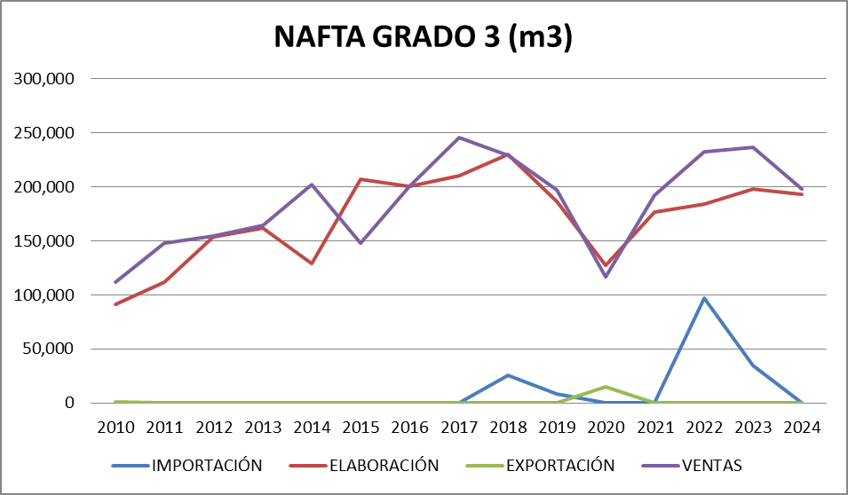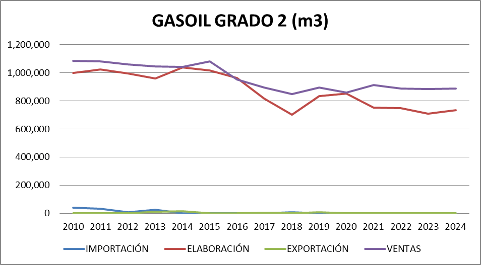 | AÑO | Gasoil Grado 2 (Común) | Gasoil Grado 3 (Ultra) | Nafta Grado 2 (Súper) | Nafta Grado 3 (Ultra) | TOTAL |