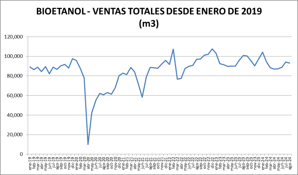 Presentamos el informe mensual sobre estadísticas de biocombustibles en nuestro país con valores actualizados a agosto de 2024.