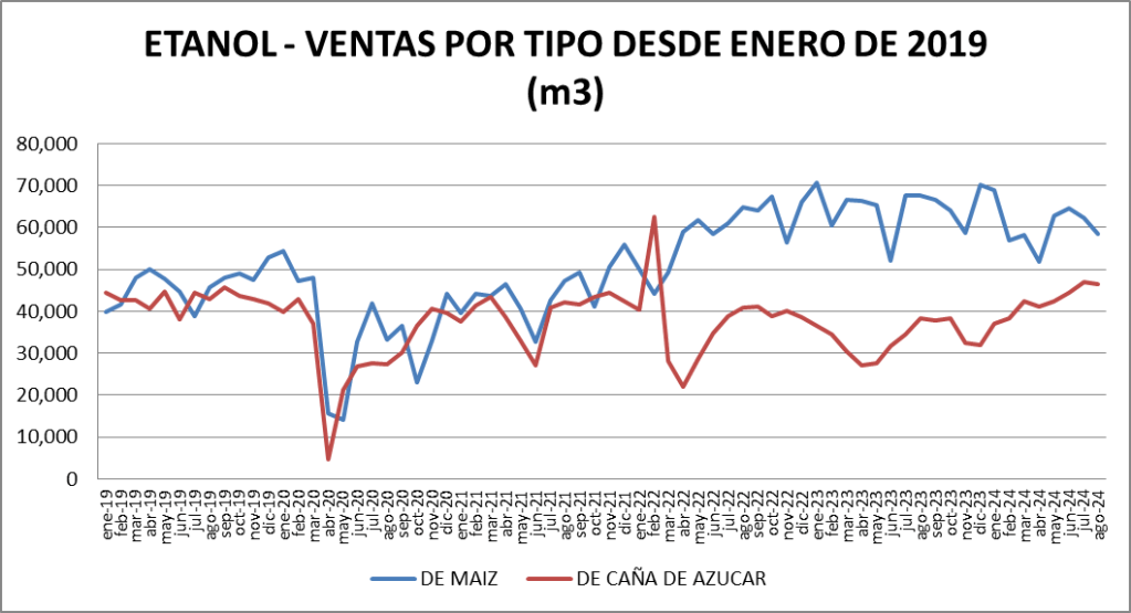 | Etanol de Maíz (m3) | 58,536 | -6.11% | -13.46% |