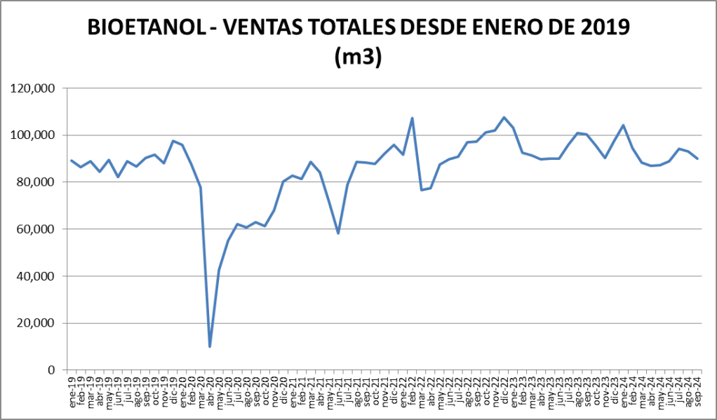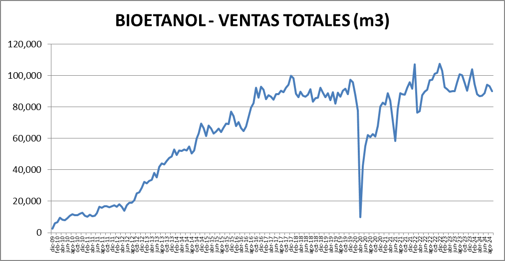El contenido de bioetanol en naftas fue del 11,78% en septiembre de 2024 en el entorno normal de funcionamiento del sistema.