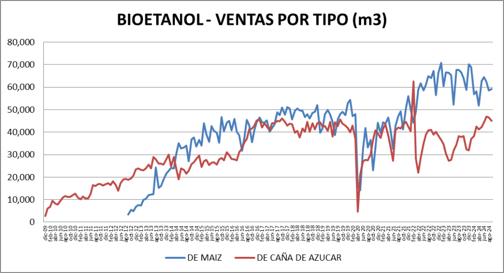 | Etanol de Maíz (m3) | 45,097 | -3.20% | -27.84% |
