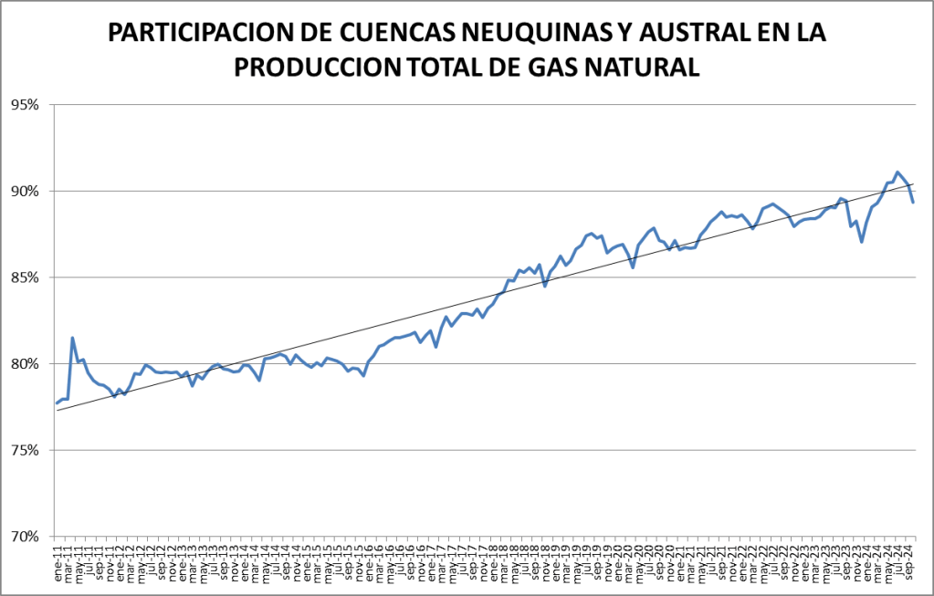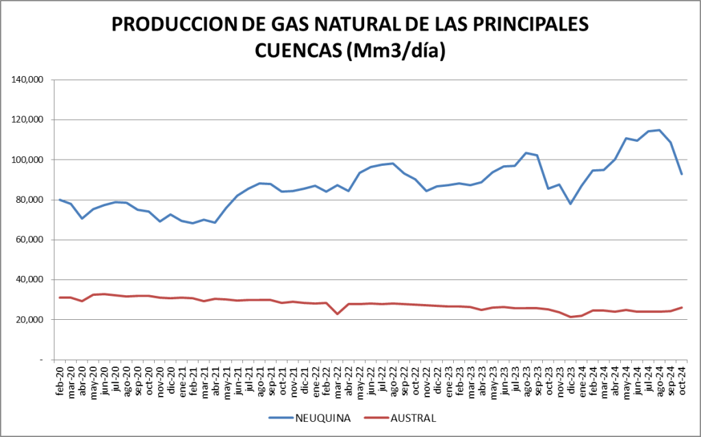 En el caso del gas natural la cuenca preponderante es la neuquina: