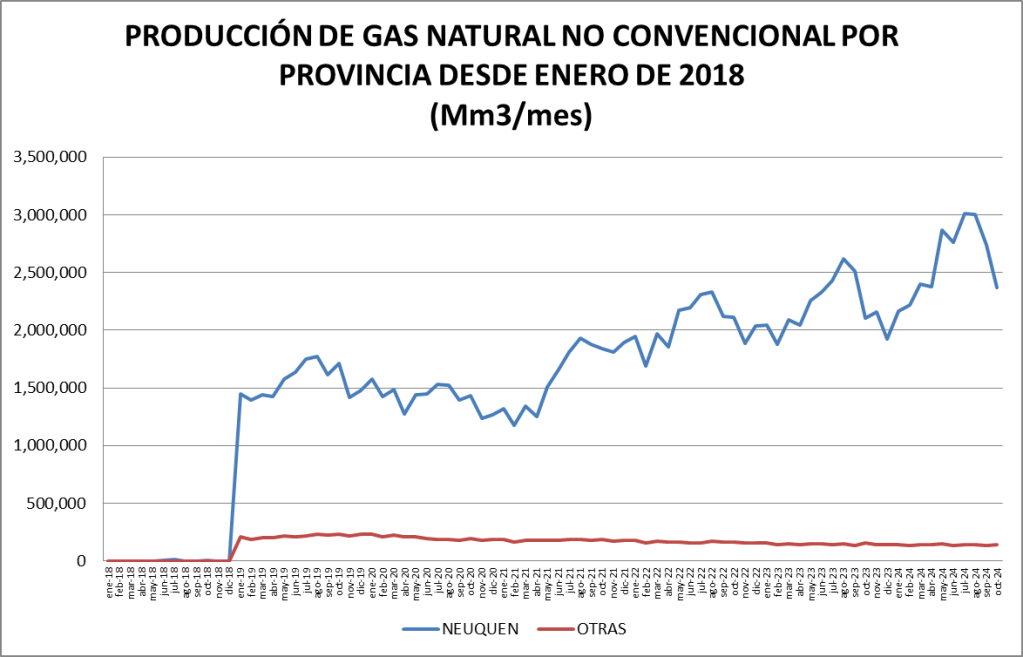 PRODUCCIÓN NO CONVENCIONAL DE GAS NATURAL POR PROVINCIA (Mm3/mes)