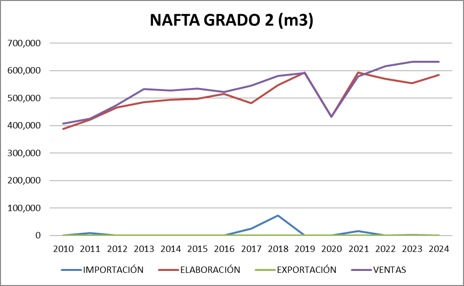 | AÑO | Gasoil Grado 2 (Común) | Gasoil Grado 3 (Ultra) | Nafta Grado 2 (Súper) | Nafta Grado 3 (Ultra) | TOTAL |