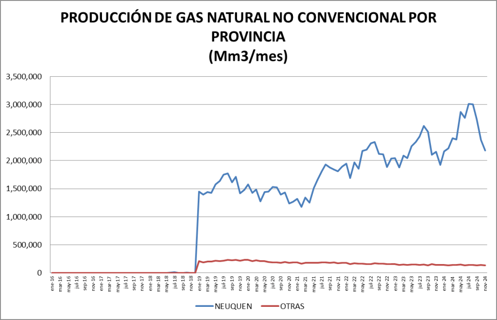 PRODUCCIÓN NO CONVENCIONAL DE GAS NATURAL POR PROVINCIA (Mm3/mes)