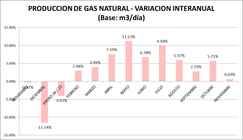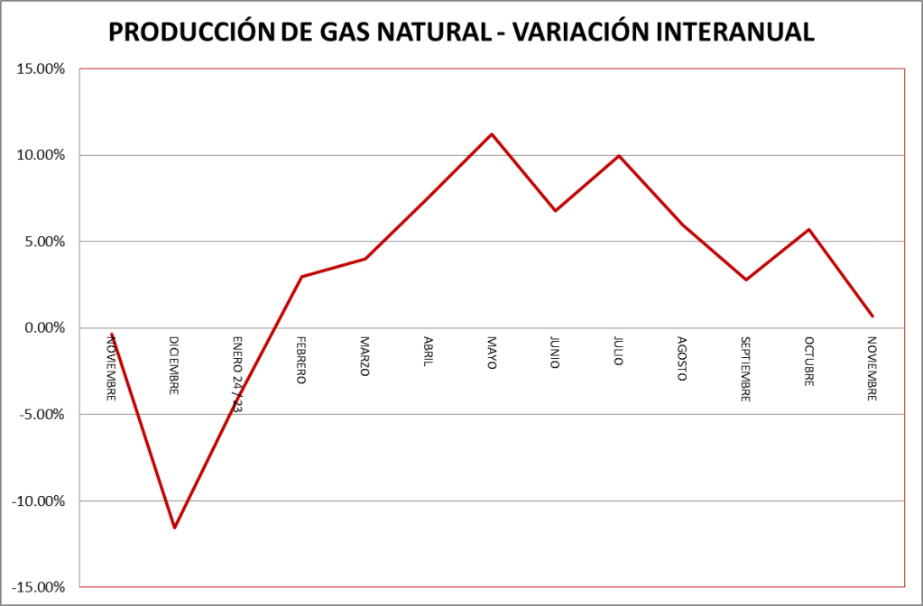 La producción de gas natural de los meses de noviembre de cada año puede verse en el gráfico a continuación: