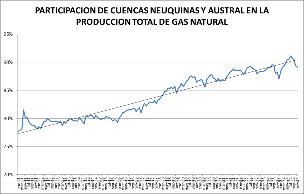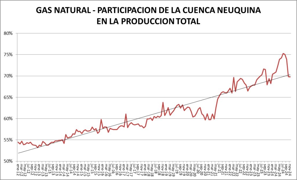 En el caso del gas natural la cuenca preponderante es la neuquina: