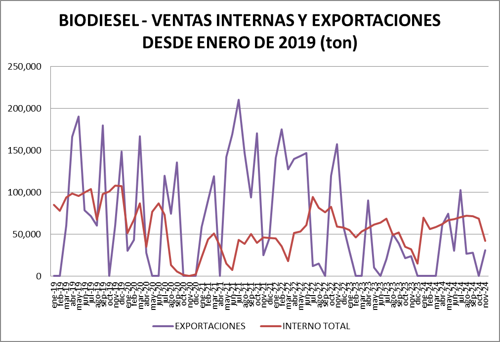 Se exportaron 30.600 toneladas de biodiesel en noviembre de 2024.