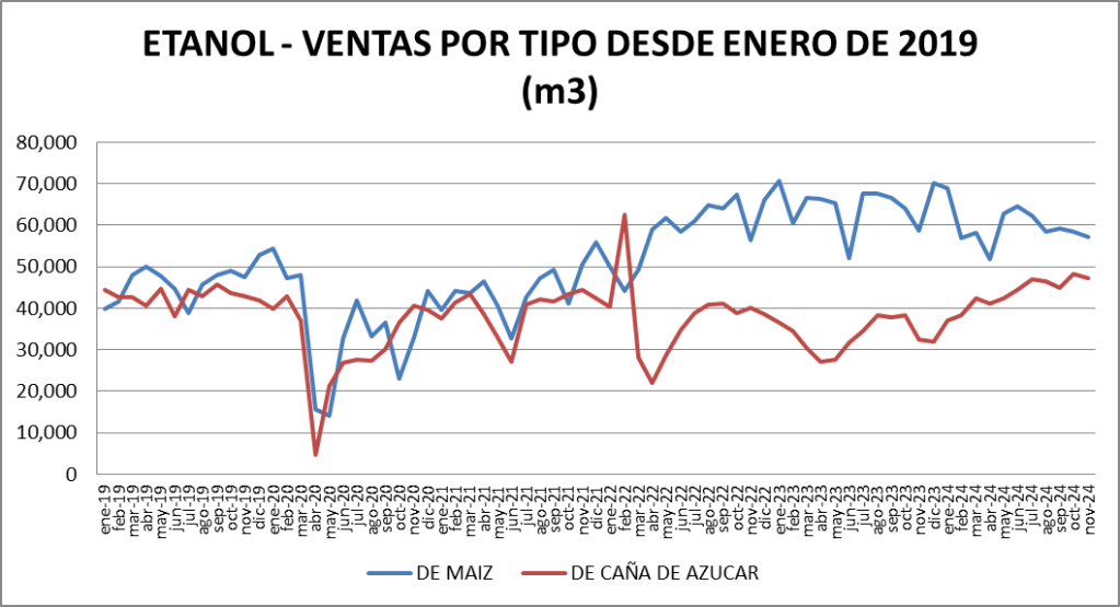 | Etanol de Maíz (m3) | 47,626 | -2.06% | -17.72% |