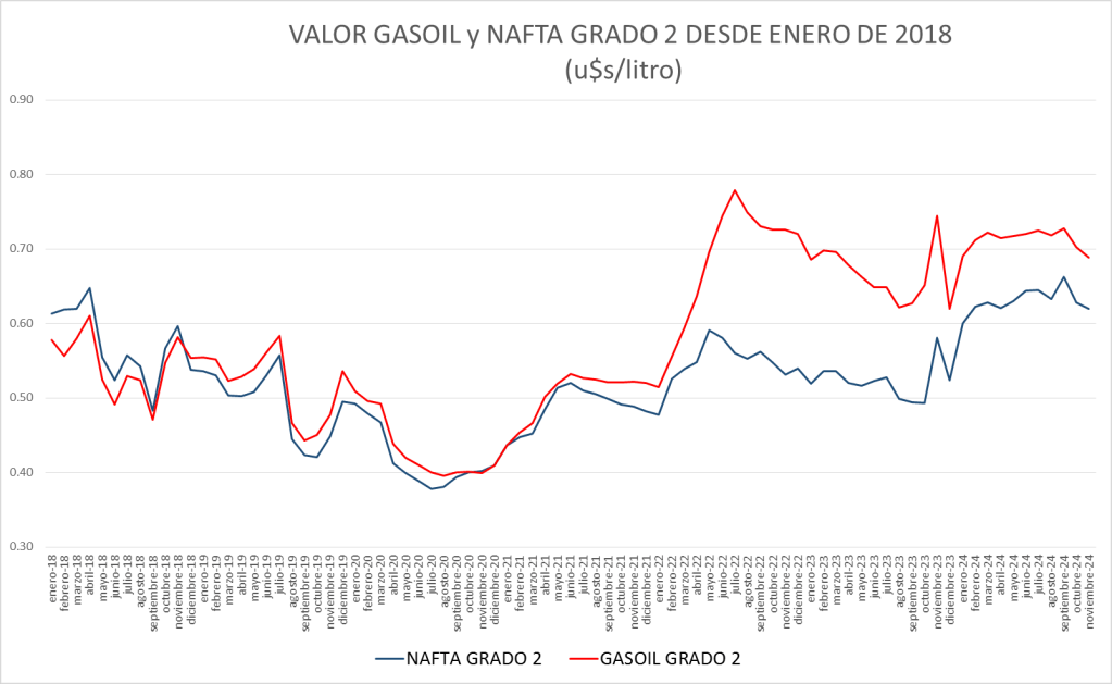 | En u$s/litro | NAFTA GRADO 2 | GASOIL GRADO 2 |