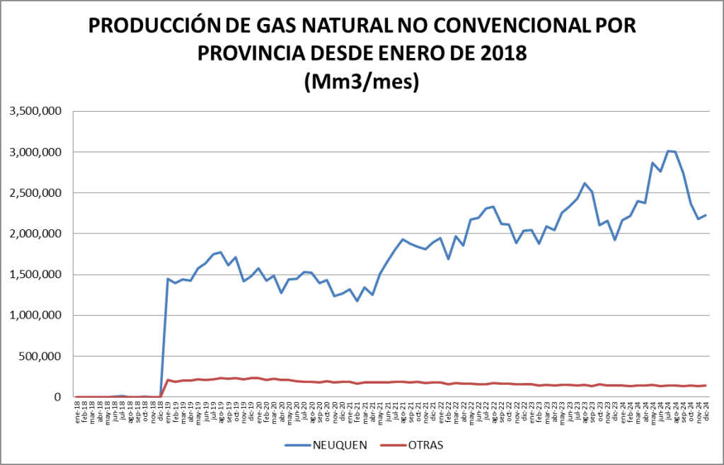 PRODUCCIÓN NO CONVENCIONAL DE GAS NATURAL POR PROVINCIA (Mm3/mes)
